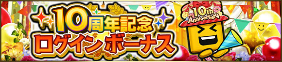 「10周年記念ログインボーナス」実施中!10月31日(金)2:59まで